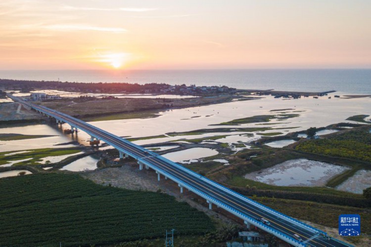 12月9日拍攝的海南環島旅游公路東方段感城港大橋(無人機照片)。 海南環島旅游公路是建設海南自貿港和創建國際旅游消費中心的先導性項目,主線總里程約988公里,串聯沿途海灣、海角、特色小鎮、旅游景區和濱海度假區等,其中,東方段主線全長74.3公里,藍天、碧海、椰影、公路和行駛的汽車,構成一幅美麗的畫卷。 新華社記者 蒲曉旭 攝