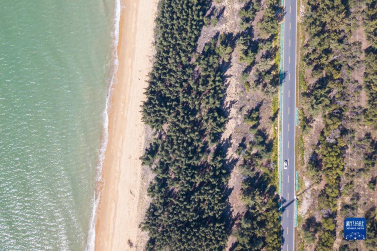 12月10日,車輛行駛在海南環島旅游公路東方段(無人機照片)。 海南環島旅游公路是建設海南自貿港和創建國際旅游消費中心的先導性項目,主線總里程約988公里,串聯沿途海灣、海角、特色小鎮、旅游景區和濱海度假區等,其中,東方段主線全長74.3公里,藍天、碧海、椰影、公路和行駛的汽車,構成一幅美麗的畫卷。 新華社記者 蒲曉旭 攝