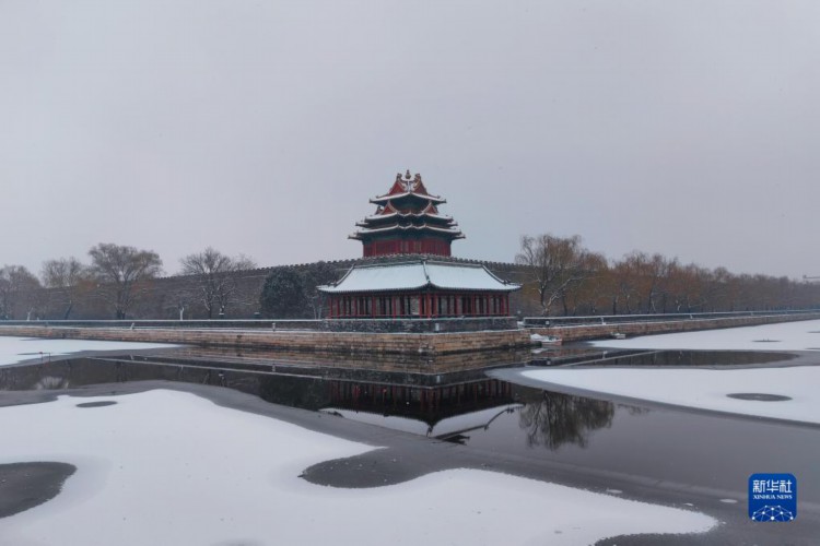 12月13日拍攝的雪中故宮角樓(手機照片)。 當日,北京再次迎來大雪天氣,不少游客前往故宮游玩賞雪。 新華社記者 張傳奇 攝