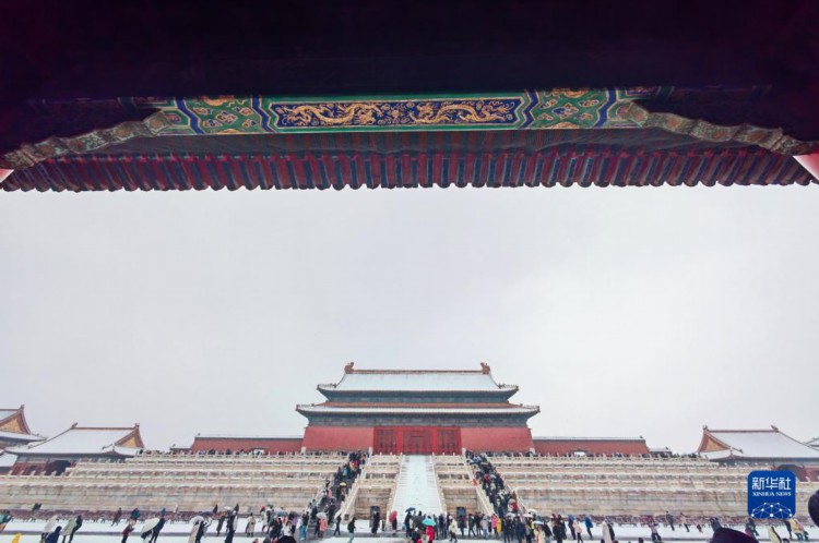 12月13日,游客在雪中游覽故宮。 當日,北京再次迎來大雪天氣,不少游客前往故宮游玩賞雪。 新華社記者 陳曄華 攝