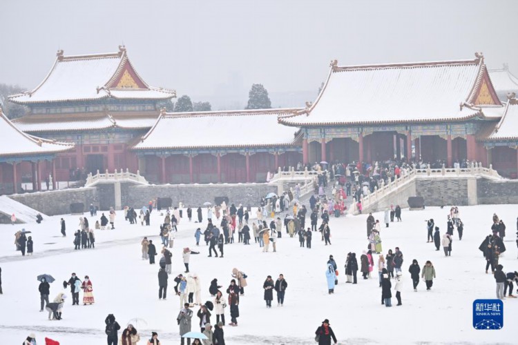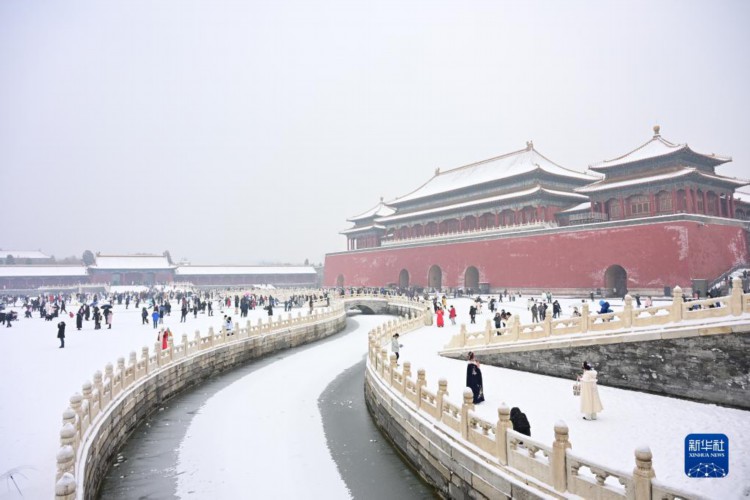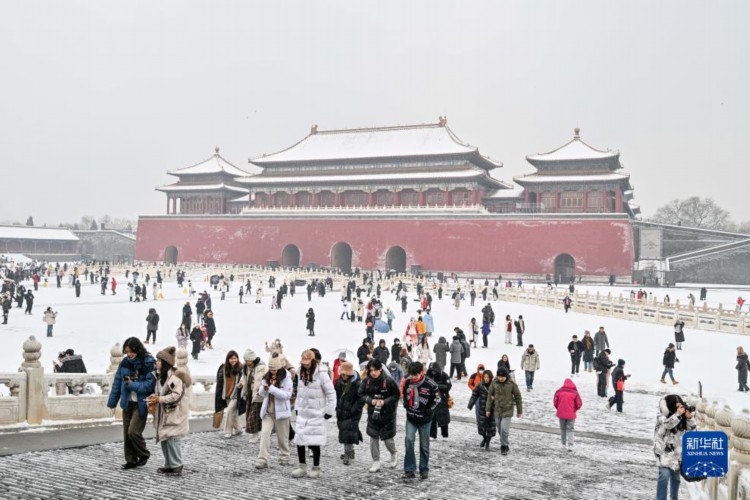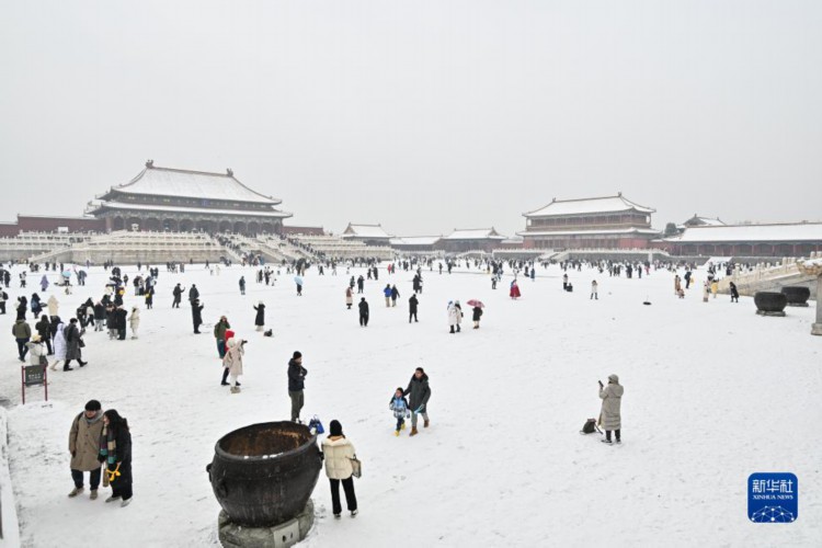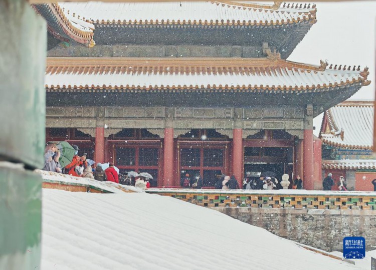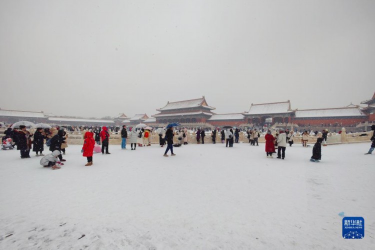 12月13日,游客在雪中游覽故宮。 當日,北京再次迎來大雪天氣,不少游客前往故宮游玩賞雪。 新華社記者 李鑫 攝