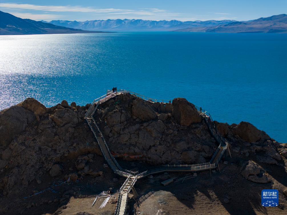這是當(dāng)惹雍錯(cuò)旁即將竣工的棧道和觀景臺(tái)(無人機(jī)照片,12月20日攝)。