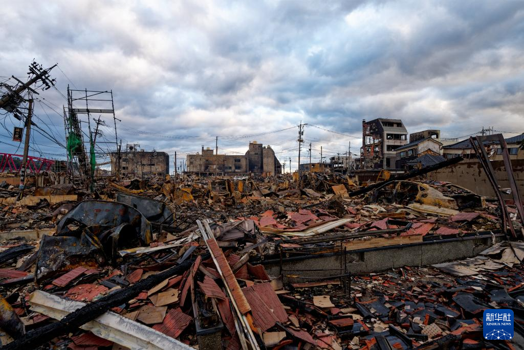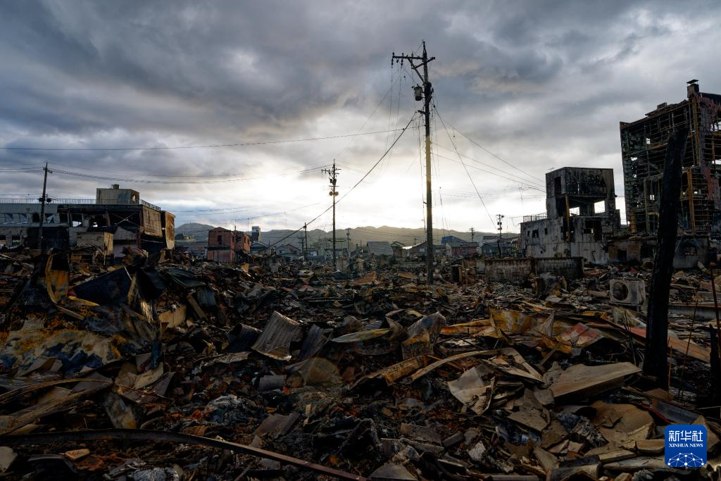 這是1月4日在日本石川縣輪島市拍攝的“輪島早市”的廢墟。 日本石川縣能登半島3日上午發(fā)生5.5級余震。地震導(dǎo)致輪島市著名觀光地“輪島早市”發(fā)生嚴重火災(zāi),超過200棟房屋被燒毀。 新華社記者 張笑宇 攝