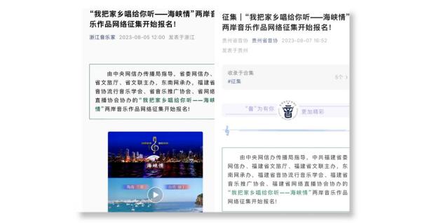 “海峽情”音樂作品征集投稿火爆! 浙江、貴州音協關注