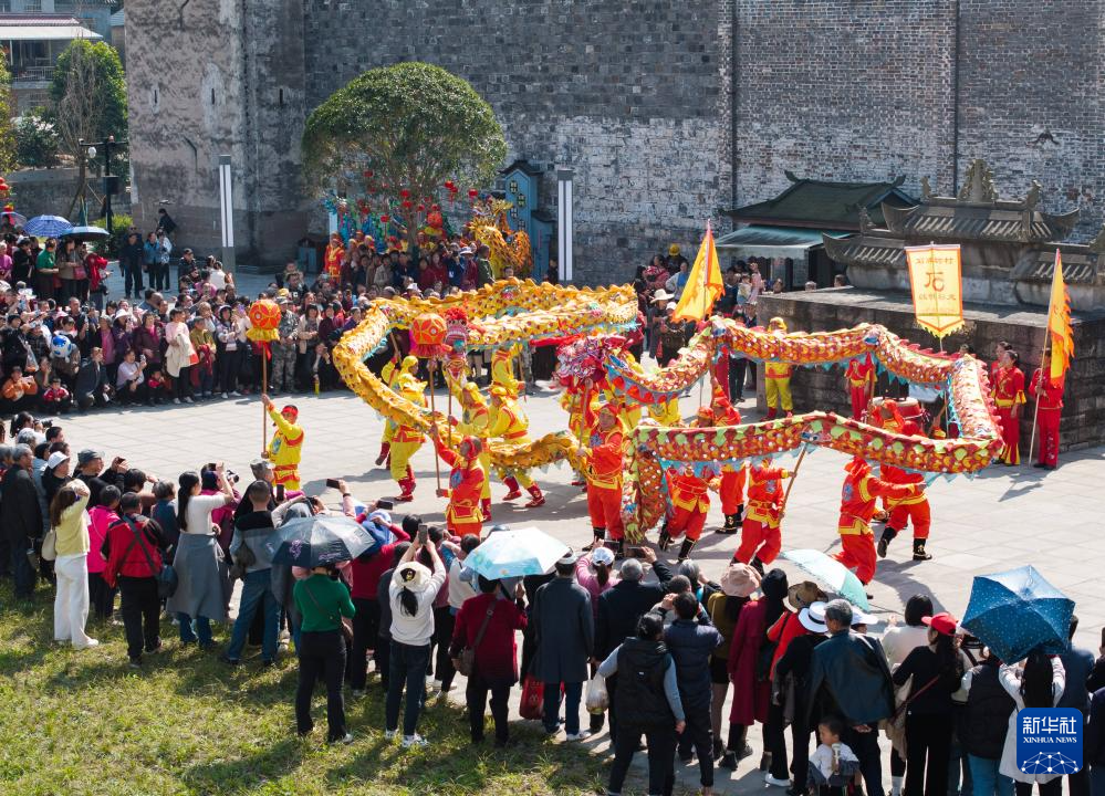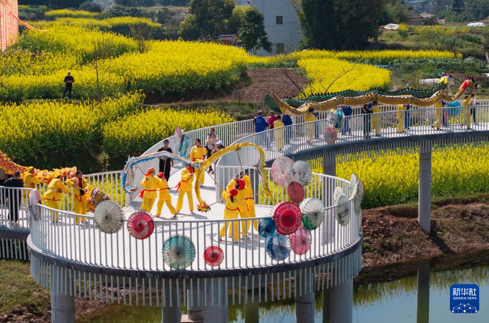 3月11日,彩龍隊走在瀘縣屈氏莊園前的屈灣橋上。 當日,四川省瀘縣在全國重點文物保護單位——屈氏莊園前舉行了四川·瀘縣第九屆“二月二 龍抬頭”民俗文化節暨龍文化宣傳日活動。 近年來,有“中國龍文化之鄉”美譽的四川省瀘縣將傳統民俗文化和鄉村文化旅游結合,深入開展“龍文化”系列民俗活動,“二月二龍抬頭”“千龍千獅鬧新春”“龍舞鬧元宵”等主題活動豐富了鄉村文化生活,受到群眾和游客的喜愛。 新華社記者 江宏景 攝pagebreak