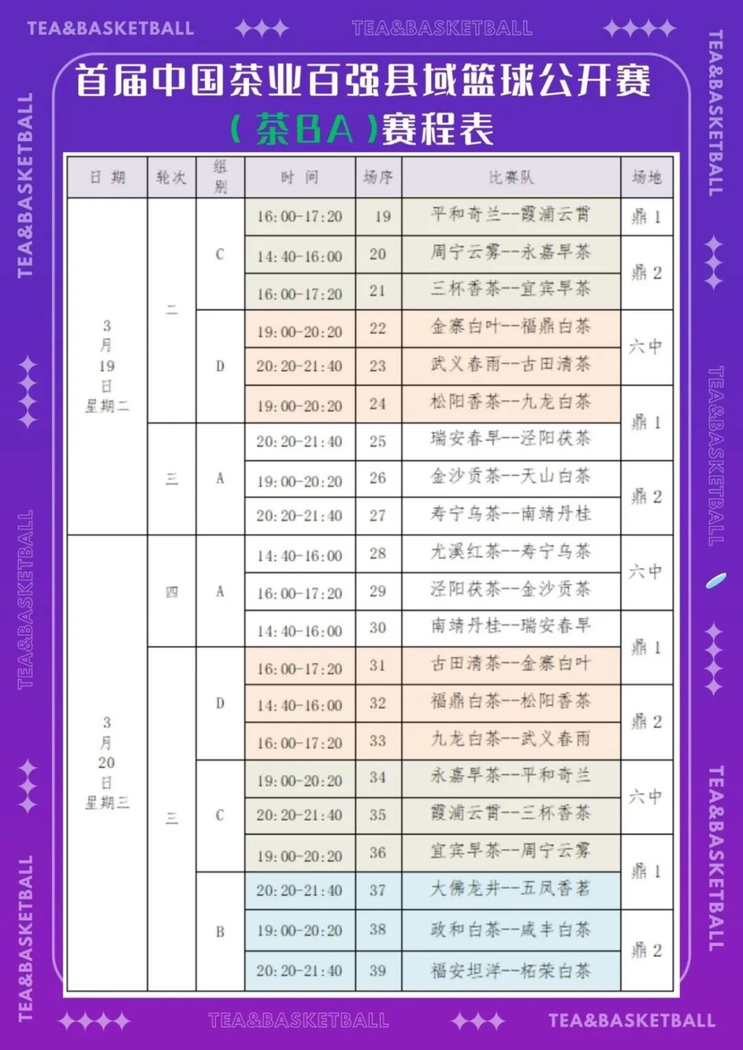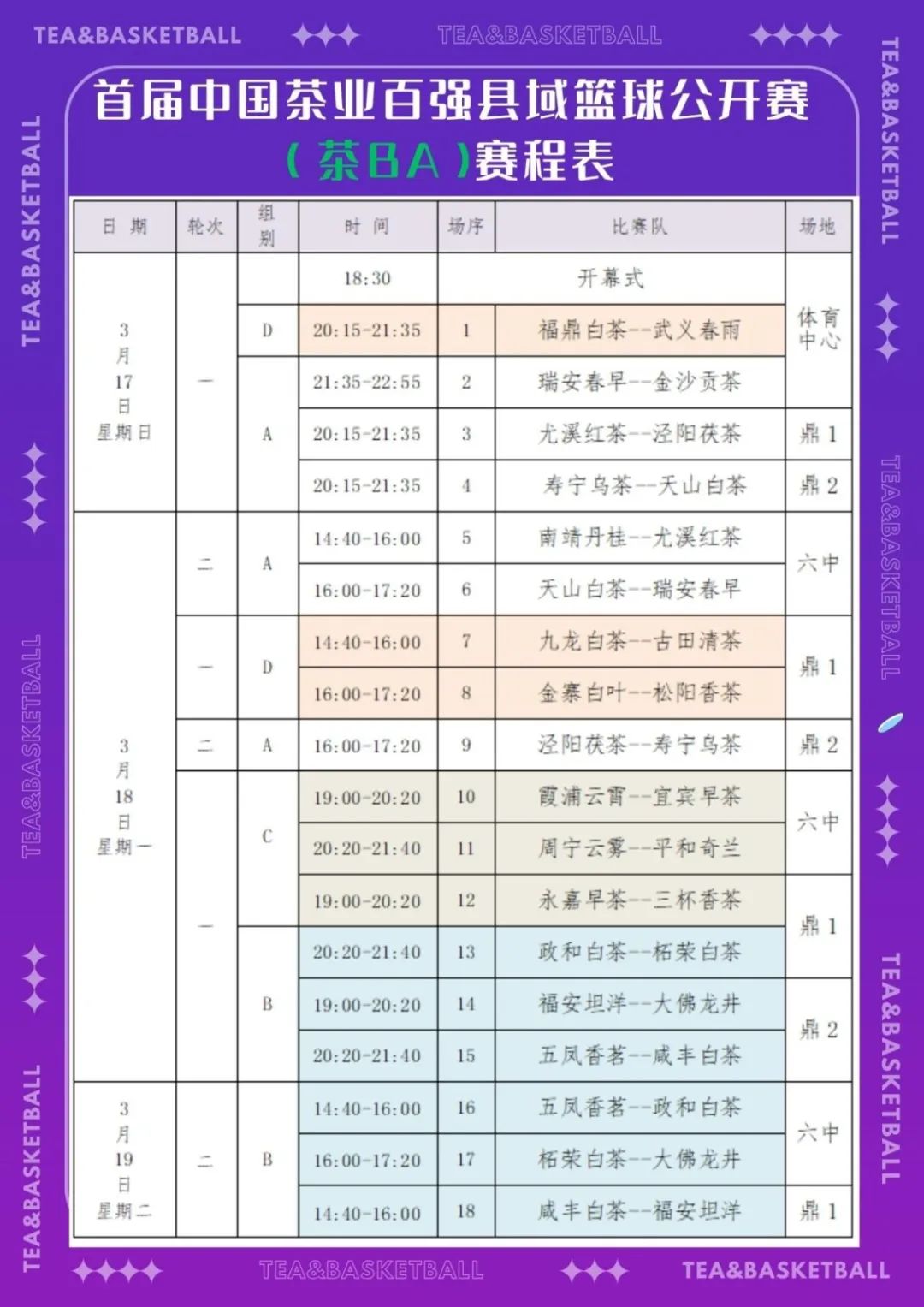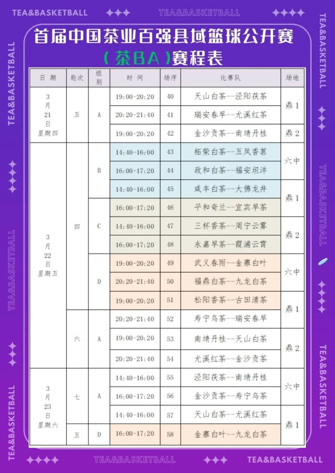 賽程表出爐!首屆全國“茶BA”即將福鼎開幕