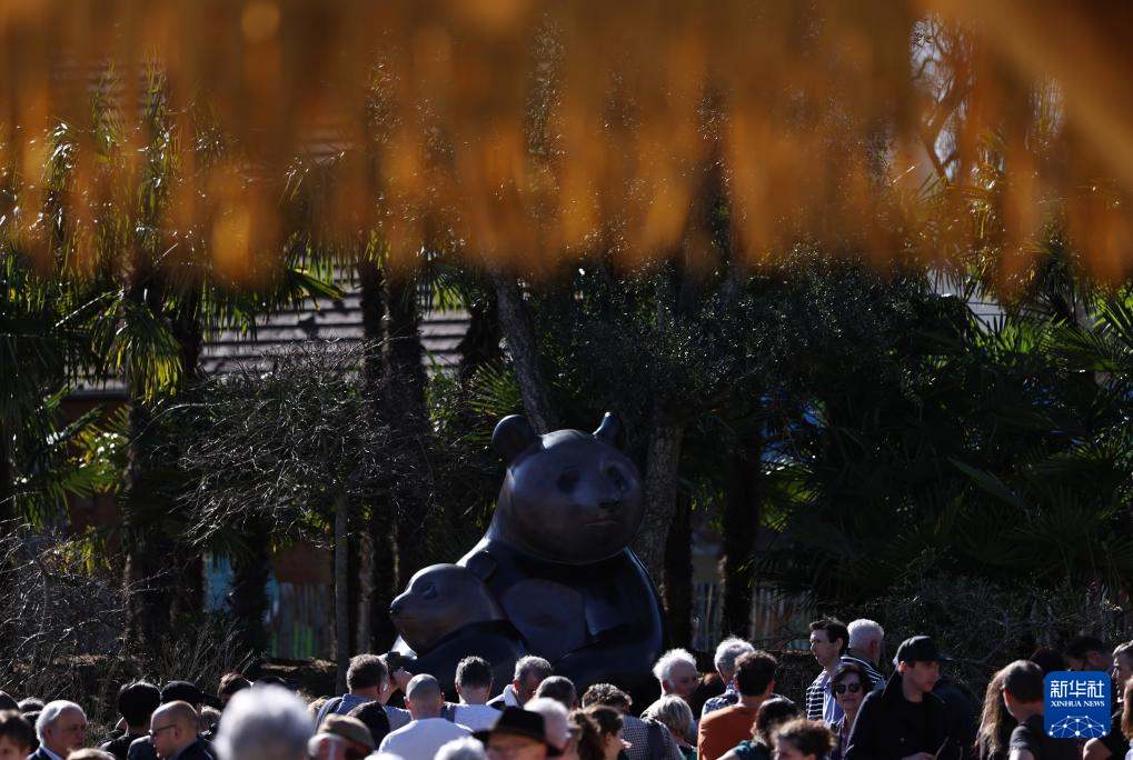 3月22日,在法國中部城市圣艾尼昂的博瓦勒野生動物園舉行的揭幕儀式上,人們觀看大熊貓雕塑。 以首只在法國誕生的大熊貓“圓夢”為原型的大型銅雕22日在法國博瓦勒野生動物園揭幕。據動物園方面介紹,銅雕高2.5米,名為《“圓夢”:圓一個夢想》,這既說明了作品由來,又闡釋了大熊貓“圓夢”名字的意涵。 新華社記者 高靜 攝