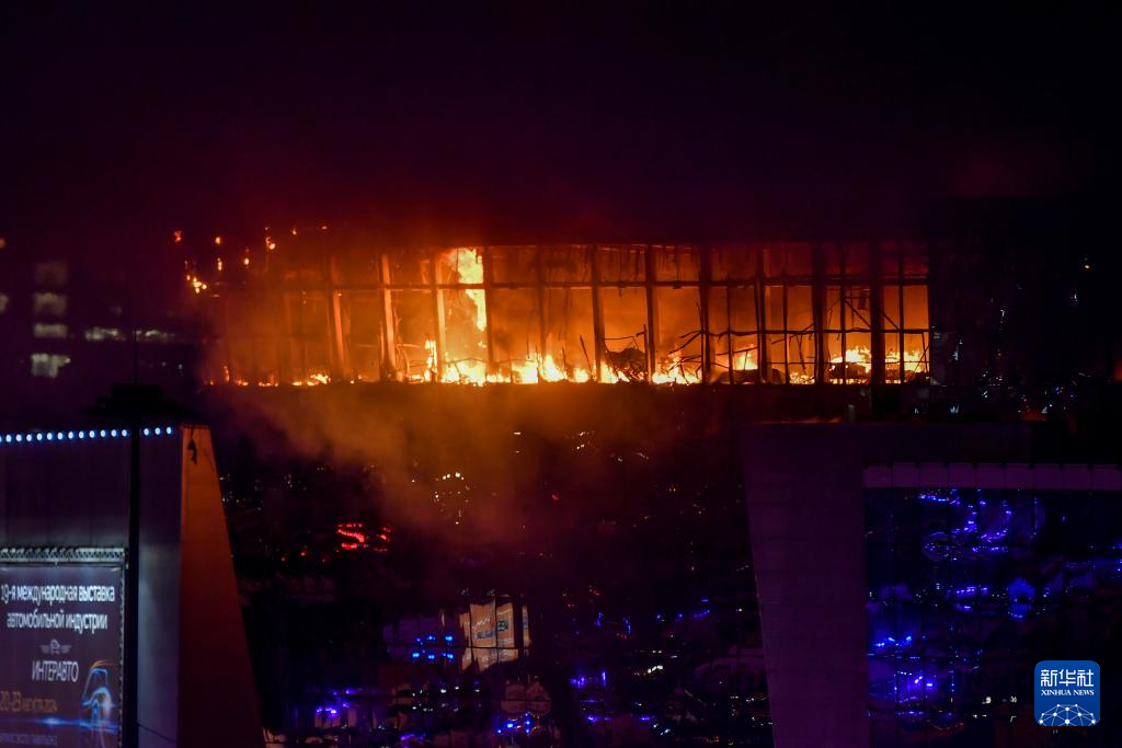 3月22日,俄羅斯莫斯科近郊克拉斯諾戈?duì)査箍耸幸灰魳窂d發(fā)生槍擊事件后引發(fā)火災(zāi)。