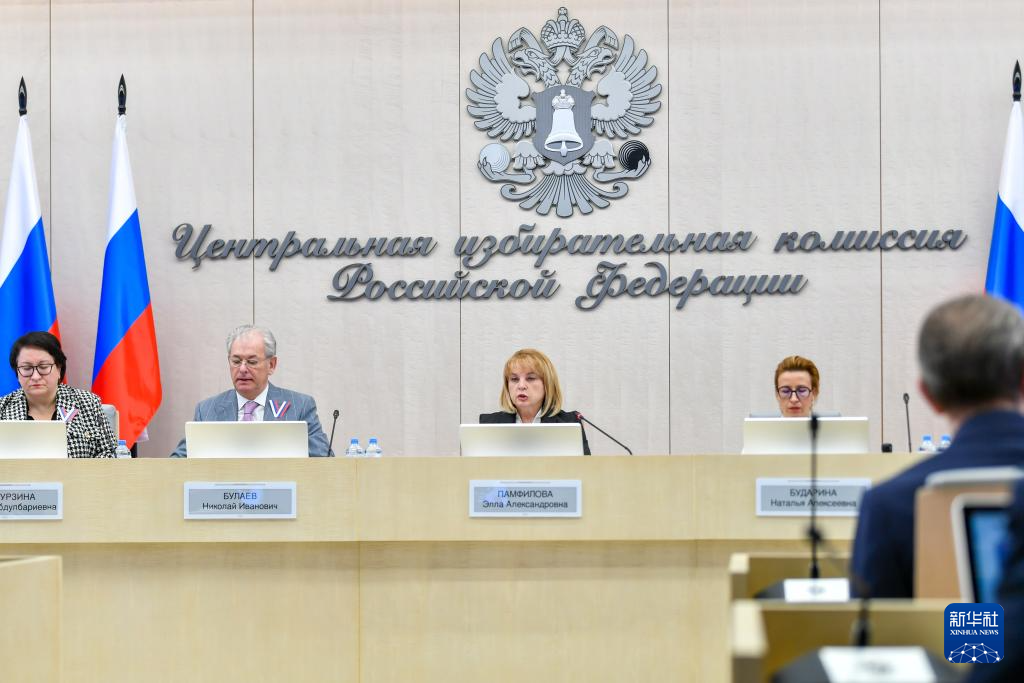 俄羅斯中央選舉委員會正式宣布普京贏得總統選舉 3月21日,俄羅斯中央選舉委員會主席帕姆菲洛娃(左三)在發布會上講話。 俄羅斯中央選舉委員會主席帕姆菲洛娃3月21日正式宣布俄總統選舉結果,俄現任總統普京在選舉中獲勝。 新華社記者 曹陽 攝