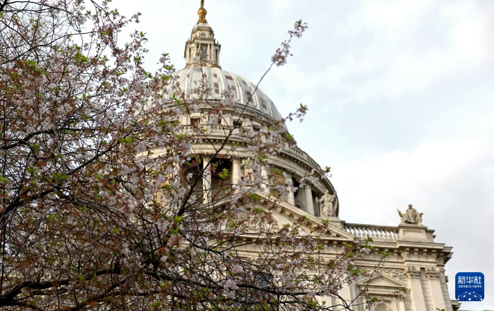 英倫春天 3月20日,在英國倫敦,櫻花盛開在圣保羅大教堂前。 新華社記者 李穎 攝