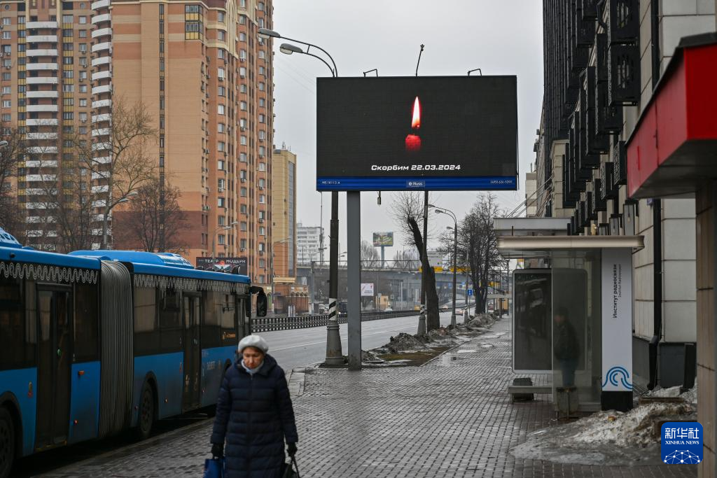 悼念莫斯科近郊嚴重恐怖襲擊事件遇難者 3月23日,俄羅斯首都莫斯科街頭的廣告牌播出蠟燭圖案,悼念莫斯科近郊恐襲事件遇難者。 俄羅斯偵查委員會23日凌晨發表聲明說,據初步統計,22日晚在莫斯科近郊音樂廳發生的恐怖襲擊事件造成超過60人死亡,遇難人數可能還會進一步上升。 新華社記者 曹陽 攝