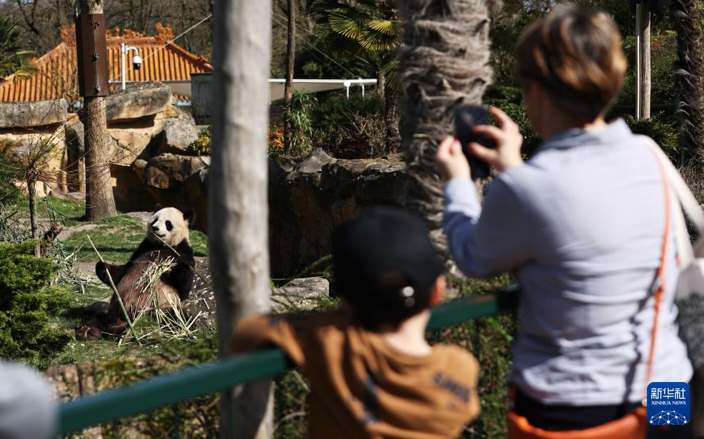 法國:春天里看大熊貓 3月22日,在法國圣艾尼昂的博瓦勒野生動物園,游客看望大熊貓“歡歡”。 博瓦勒野生動物園位于法國中部的圣艾尼昂市。大熊貓“圓夢”去年回國后,目前共有4只大熊貓旅居法國,家長“圓仔”“歡歡”,還有它們的雙胞胎女兒“歡黎黎”“圓嘟嘟”。 新華社記者 高靜 攝