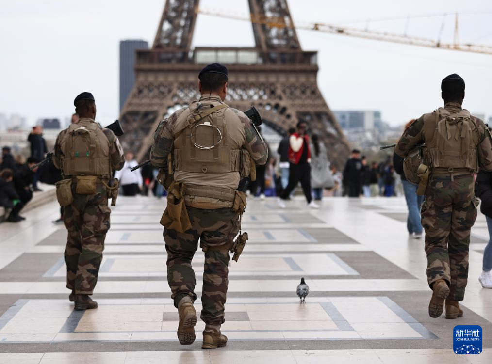 法國將反恐安全警戒級別提升至最高級 3月25日,法國士兵在巴黎特羅卡德羅廣場附近巡邏警戒。 法國總理阿塔爾24日晚宣布,鑒于法國面臨的恐怖襲擊威脅上升,法國將反恐安全警戒級別提升至最高級。法國總統馬克龍24日晚召開緊急內閣安全會議,討論俄羅斯莫斯科近郊音樂廳恐怖襲擊事件及其影響。阿塔爾會后在社交媒體上宣布,鑒于極端組織“伊斯蘭國”聲稱發動了這次恐襲,以及法國面臨的恐襲威脅,政府決定將反恐安全警戒級別提升至最高級。 新華社記者 高靜 攝