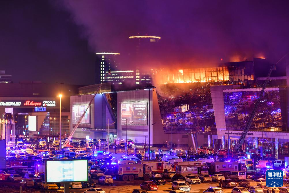 3月22日,俄羅斯莫斯科近郊克拉斯諾戈爾斯克市一音樂廳發生槍擊事件后引發火災。