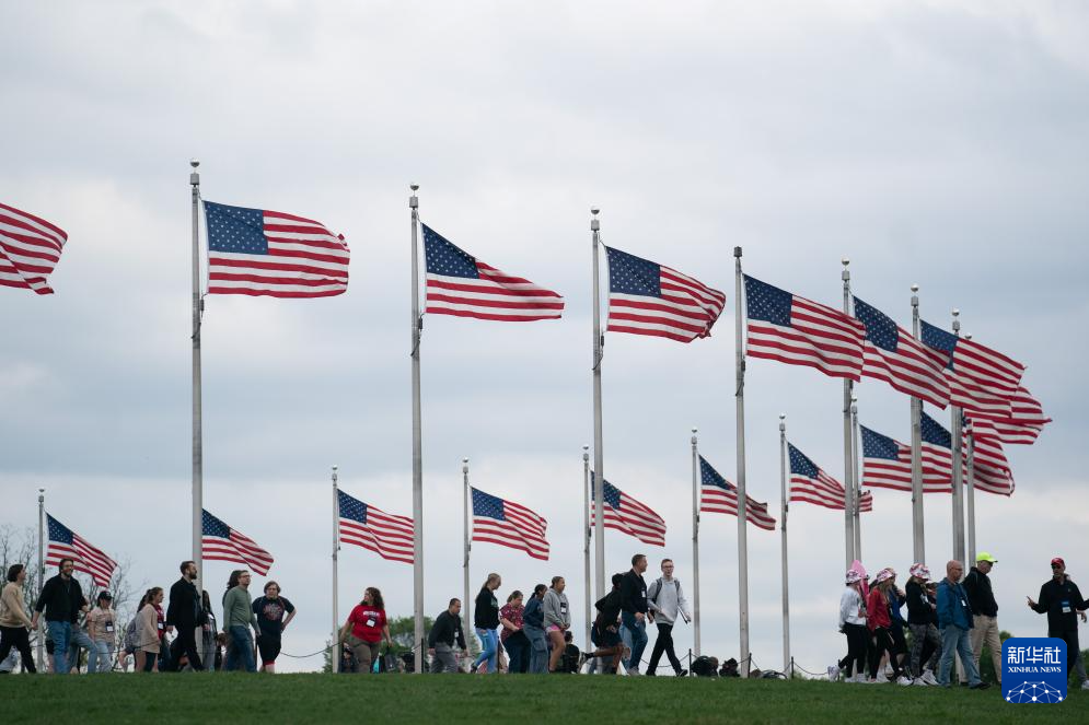 4月25日,游客在美國首都華盛頓的國家廣場游覽。 美國商務部25日公布的首次預估數據顯示,今年第一季度美國實際國內生產總值(GDP)按年率計算增長1.6%,增幅較去年第四季度明顯收窄。 新華社記者 劉杰 攝