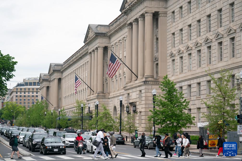 這是4月25日在美國首都華盛頓拍攝的商務部大樓。 美國商務部25日公布的首次預估數據顯示,今年第一季度美國實際國內生產總值(GDP)按年率計算增長1.6%,增幅較去年第四季度明顯收窄。 新華社記者 劉杰 攝