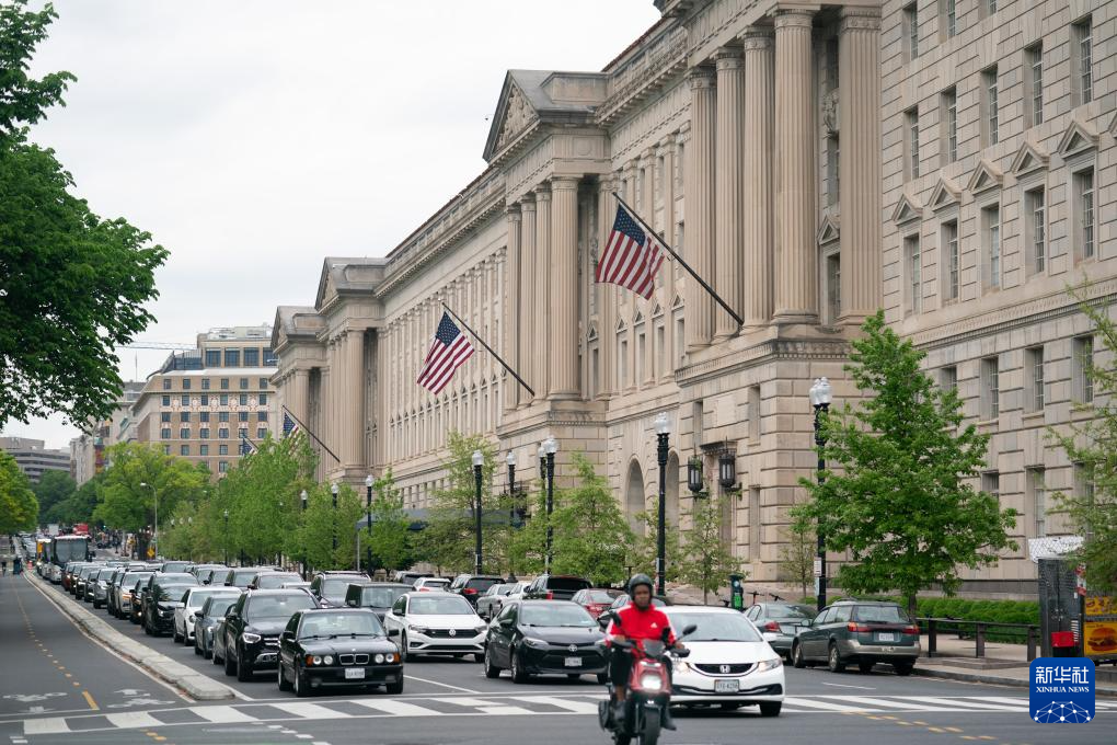這是4月25日在美國首都華盛頓拍攝的商務(wù)部大樓。
