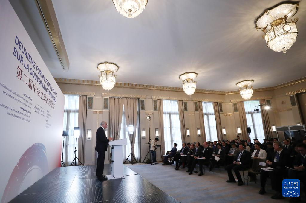 第二屆中法全球治理論壇在巴黎舉行 這是5月2日在法國巴黎拍攝的第二屆中法全球治理論壇開幕式現場。 第二屆中法全球治理論壇2日在法國巴黎舉行,兩國百余名與會專家圍繞“深化全球治理改革,共建多邊主義未來”主題深入研討交流。 新華社記者 高靜 攝