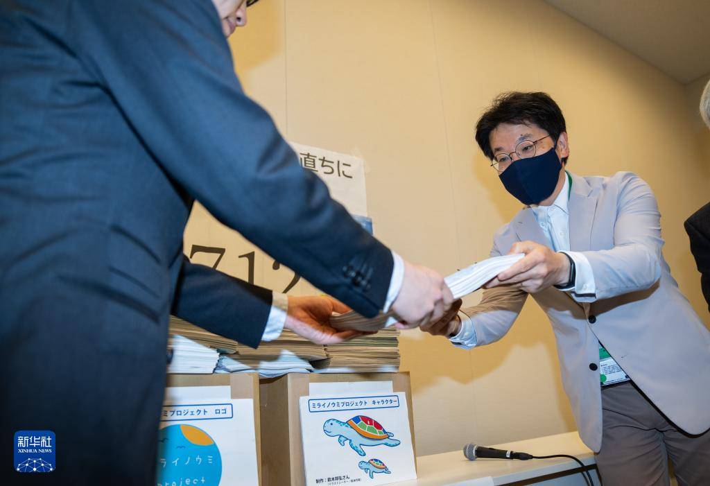 日本超18萬民眾聯名呼吁停止核污染水排海 4月24日,在日本東京眾議院第二議員會館,非營利組織“原子能資料情報室”事務局長松久保肇(右)遞交簽名材料。 日本非營利組織代表24日向日本政府遞交184712位民眾的簽名,呼吁政府和東京電力公司立刻停止向海洋排放福島第一核電站的核污染水。 新華社記者 張笑宇 攝