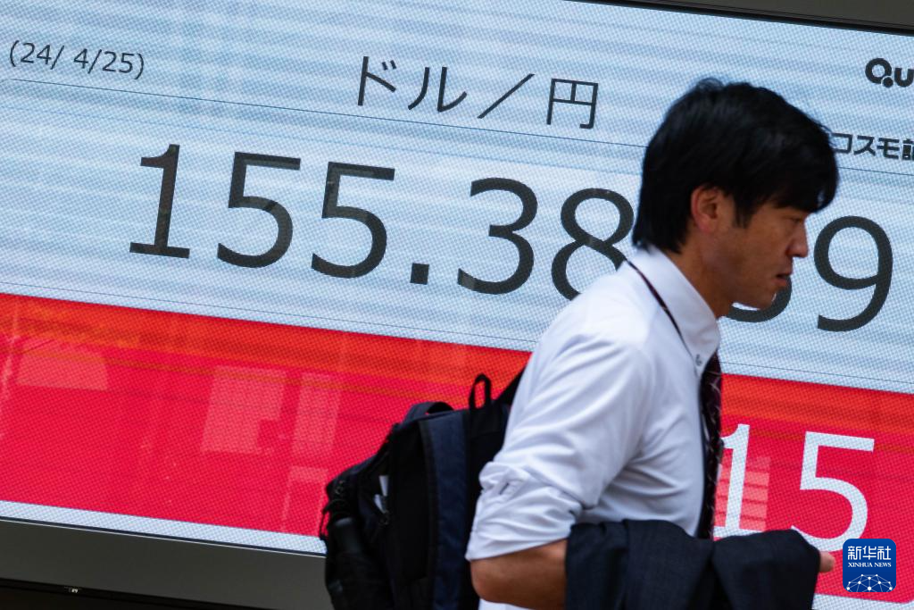 日元對美元匯率跌至新低 4月25日,行人走過日本東京一處顯示實時匯率的電子屏幕。 24日晚,日本東京外匯市場日元對美元匯率跌破1美元兌155日元水平,這是自1990年6月以來日元對美元匯率首次觸及該水平。 新華社記者 張笑宇 攝