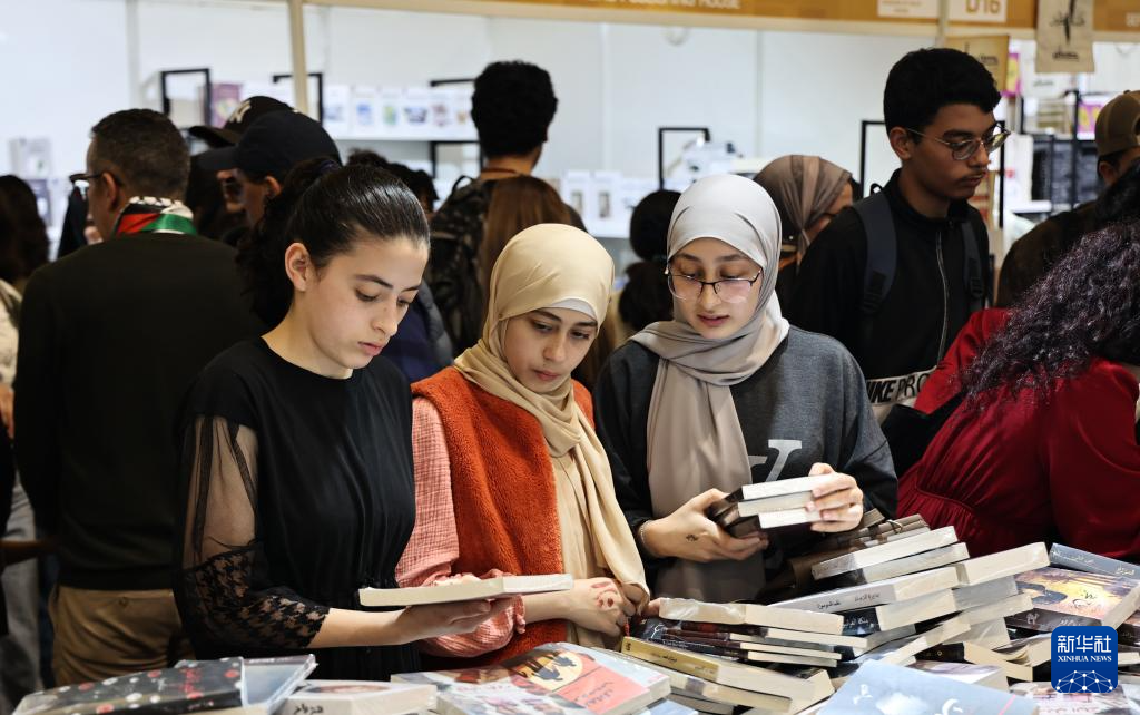 5月11日,人們在摩洛哥拉巴特國際書展上選購圖書。