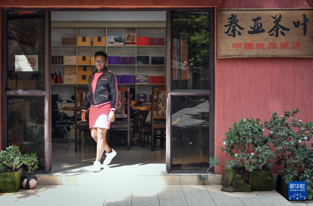 這是5月14日在肯尼亞內羅畢拍攝的一家售賣紫茶的商鋪。