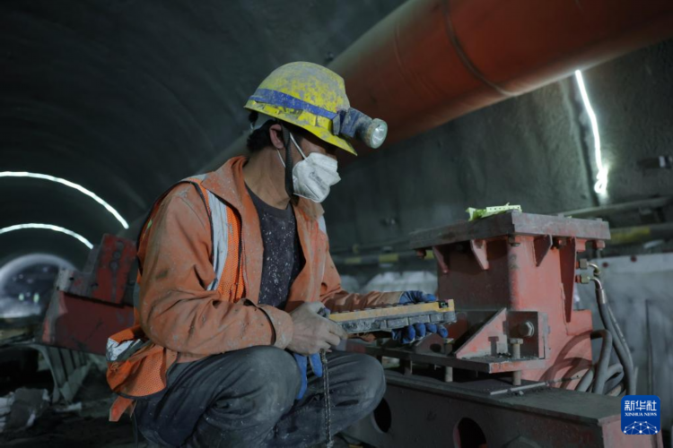 6月3日,中鐵四局的建設者在西成鐵路甘肅段格爾隧道內施工作業。