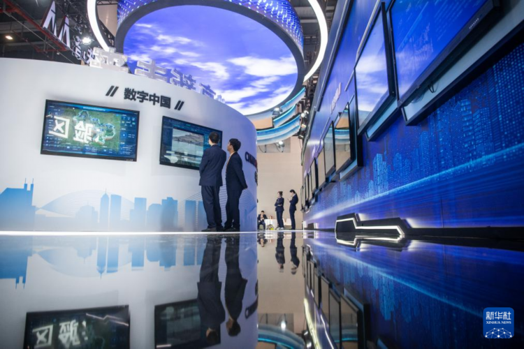 在湖北省武漢市拍攝的“5G+工業(yè)互聯(lián)網(wǎng)”成就展現(xiàn)現(xiàn)場(chǎng)(2023年11月20日攝)。新華社記者 伍志尊 攝