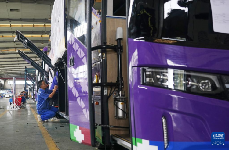 在位于江西省南昌市的江西凱馬百路佳客車有限公司,技術(shù)人員對(duì)即將出口的客車進(jìn)行檢測(cè)(4月3日攝)。新華社記者 萬(wàn)象 攝