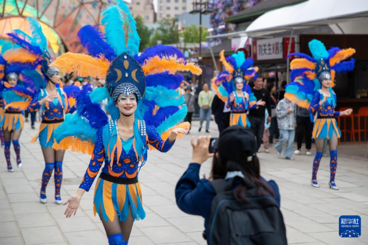 6月13日,游客在沈陽老北市景區欣賞表演。