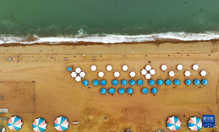 這是6月15日拍攝的大連金石灘海濱浴場(chǎng)(無(wú)人機(jī)照片)。