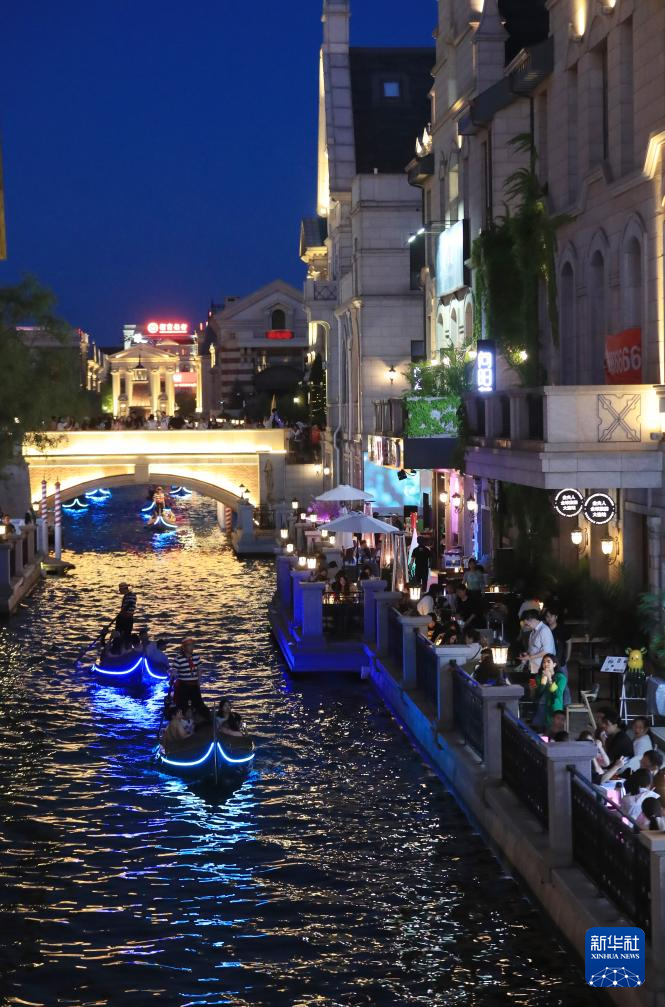 6月15日,在大連東方水城景區,游客乘船游玩。
