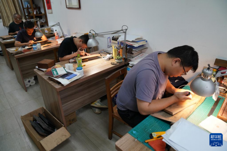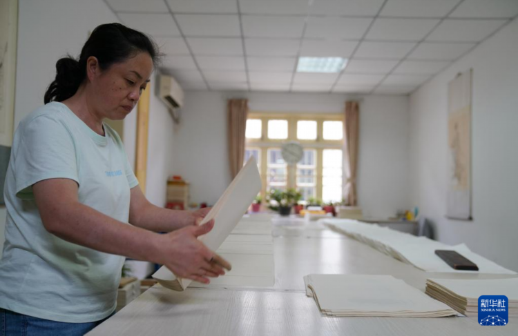 6月27日,在金陵刻經處技藝展示區,工作人員在齊欄。