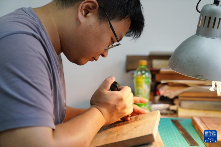 6月27日,在金陵刻經處技藝展示區,非遺傳承人王康在刻版。