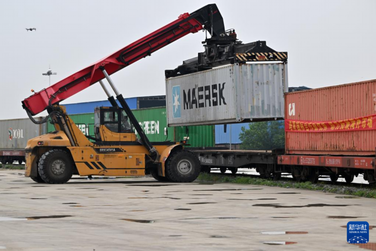 7月1日,中歐班列在天津國際陸港裝運貨物。