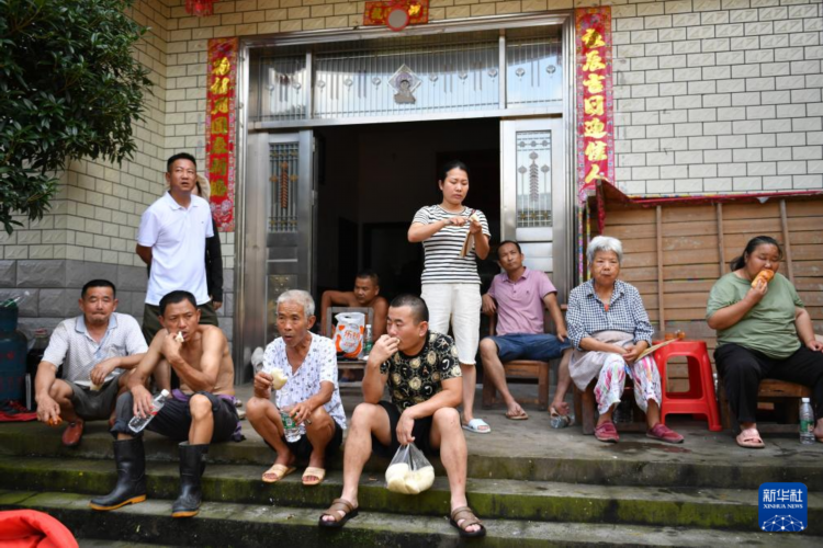 7月2日,生活物資抵達(dá)后,辰溪縣辰陽(yáng)鎮(zhèn)陸家灣村村民在吃中飯。