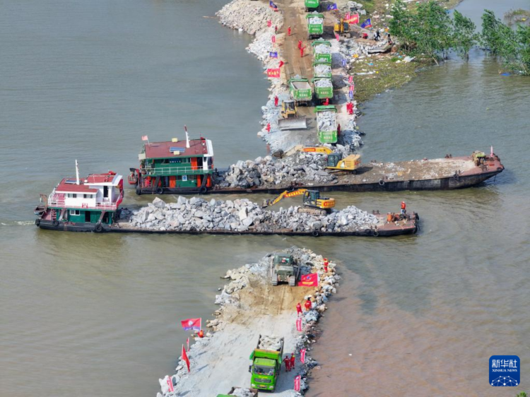 新華全媒+·聚焦防汛抗洪丨剩余45.5米!湖南華容團洲垸洞庭湖大堤堵口進入倒計時