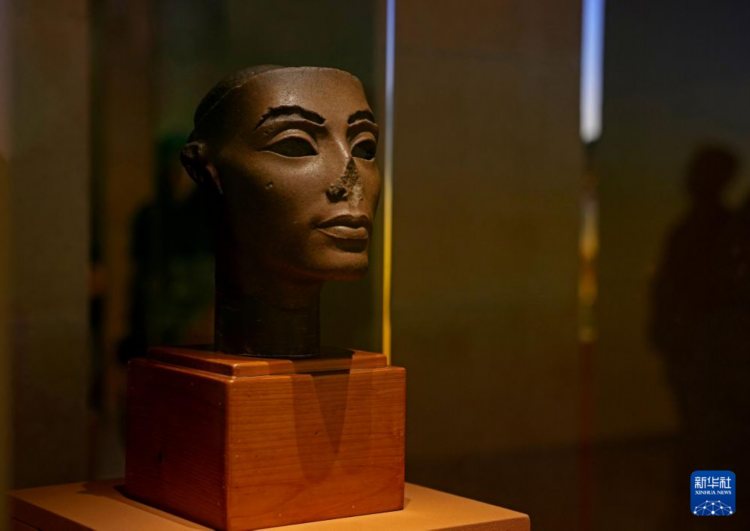 7月17日在“圖坦卡蒙的時代”展區拍攝的納芙蒂蒂頭像。