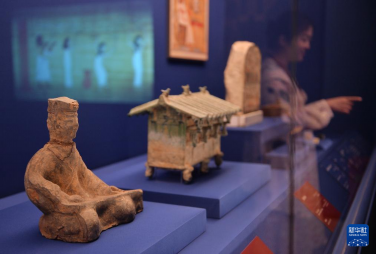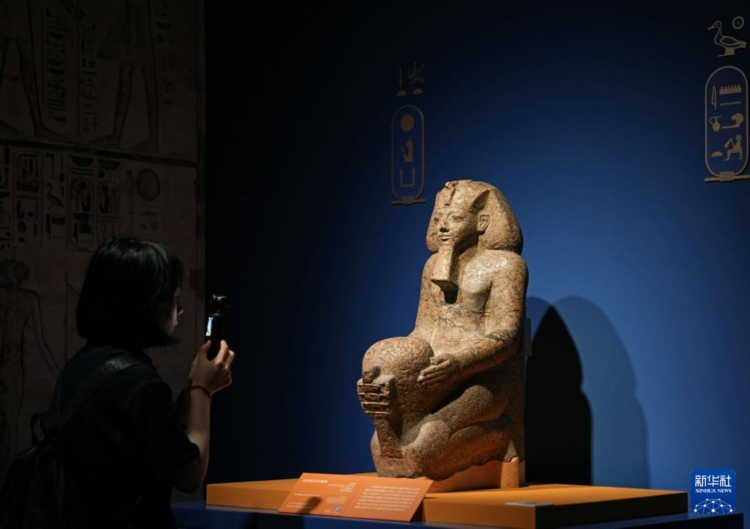 “法老的國度”展區展示的舍本索普度特塑像(7月16日攝)。