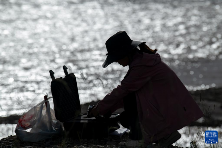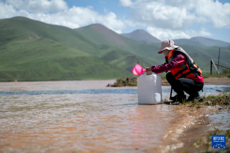 7月23日,青海省水文水資源測報中心的馬蕊在聶洽曲進行水樣采集工作。