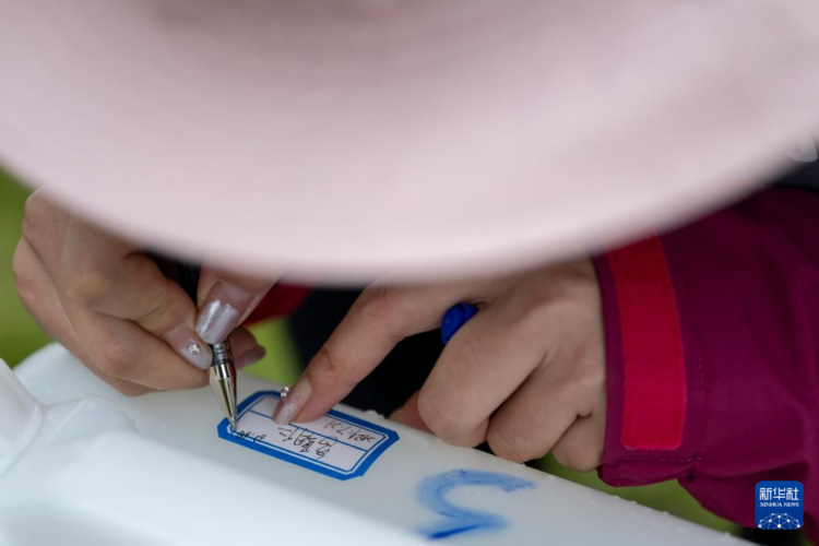 7月23日,長江科學院河流研究所的劉玉嬌(中)在聶洽曲收納采集的樣品。
