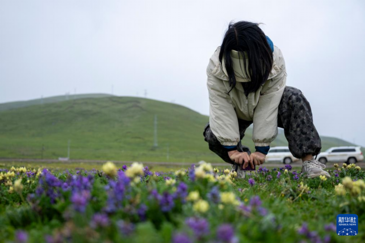 7月23日,長江科學院水資源綜合管理研究所的程淑婕在通天河曲麻萊河段測量土壤溫濕度。