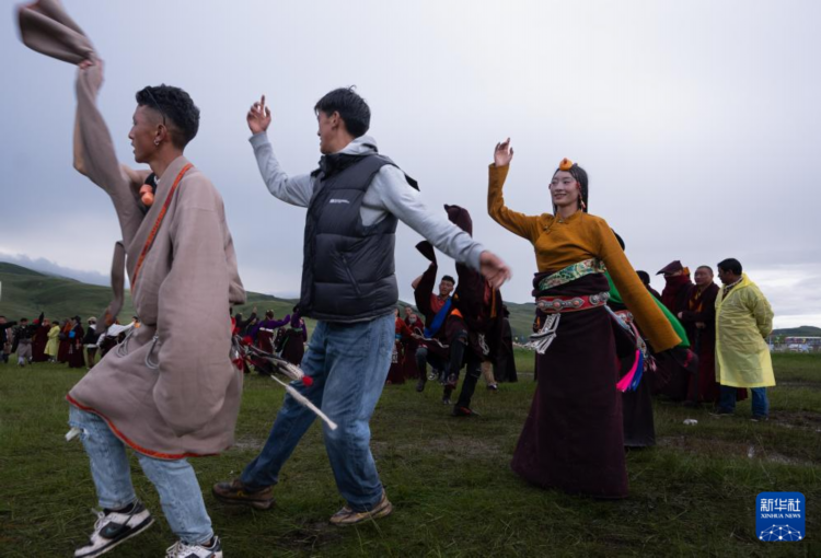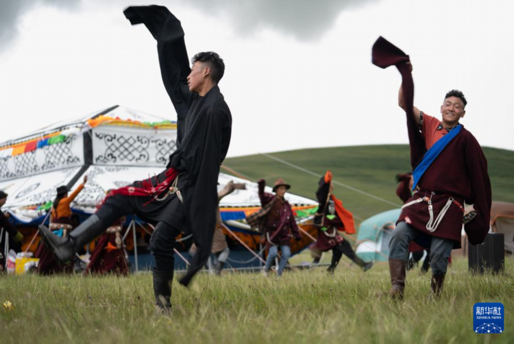 7月27日,當地群眾在日通草原上隨著音樂跳起歡快的鍋莊。