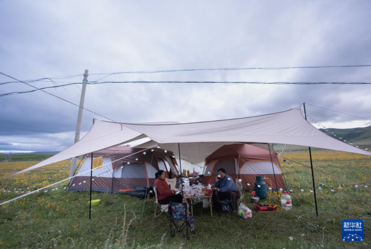 7月28日,當地群眾在日通草原上支起帳篷和天幕露營。