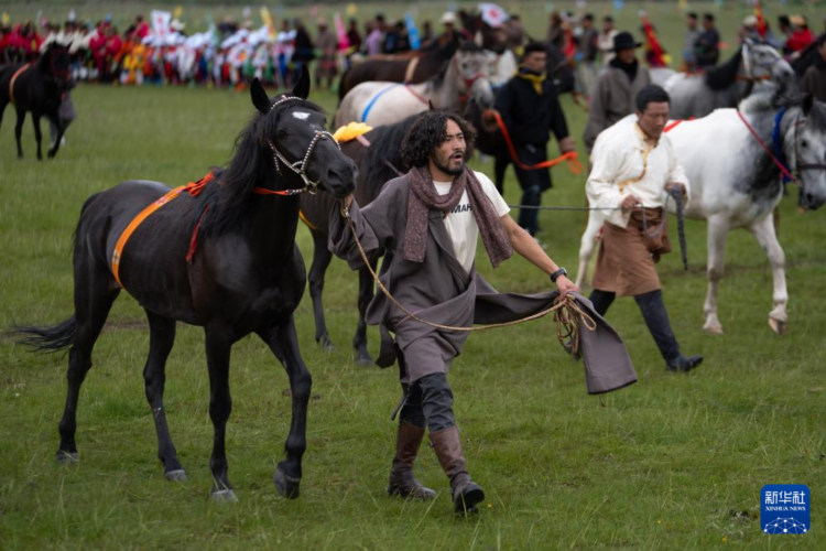 7月27日,白玉縣阿察鎮昌拖村牧民澤仁翁堆牽著馬走進賽場。
