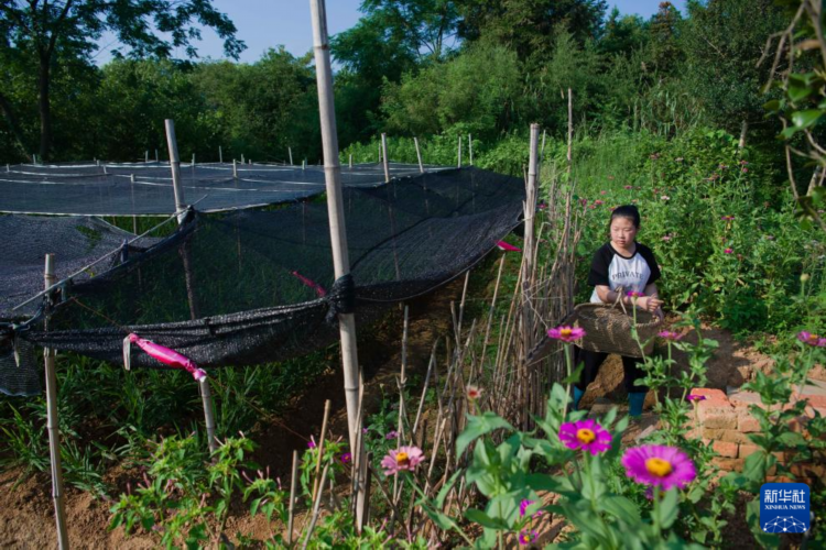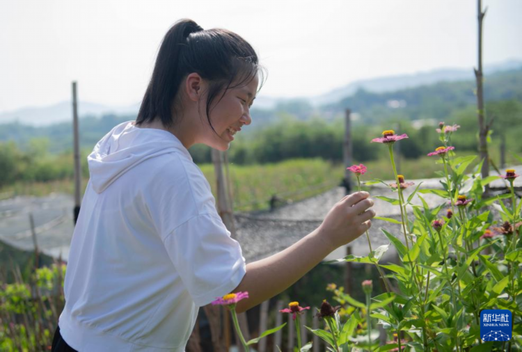 7月23日,在安徽省銅陵市義安區(qū)天門鎮(zhèn)新華村,朱晴雨在家門口欣賞爸爸種的花。新華社記者 傅天 攝