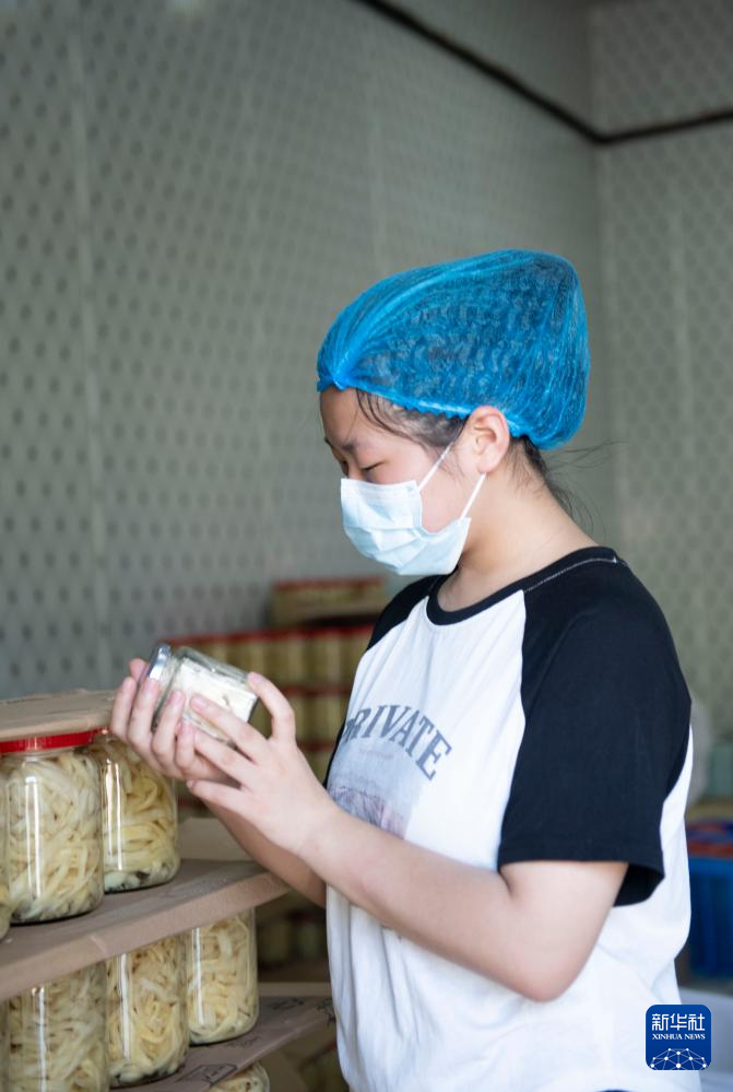 7月24日,在安徽省銅陵市義安區(qū)天門鎮(zhèn),朱晴雨在銅陵阿朵白姜發(fā)展有限公司了解該公司白姜產(chǎn)品。新華社記者 傅天 攝