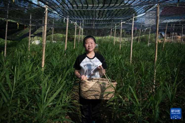 7月24日,在安徽省銅陵市義安區(qū)天門鎮(zhèn)新華村,朱晴雨在自家白姜田里。新華社記者 張端 攝