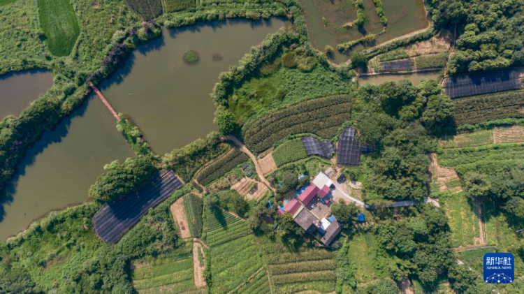 這是7月24日在安徽省銅陵市義安區(qū)天門鎮(zhèn)新華村拍攝的朱晴雨家周邊環(huán)境(無人機照片)。新華社記者 傅天 攝