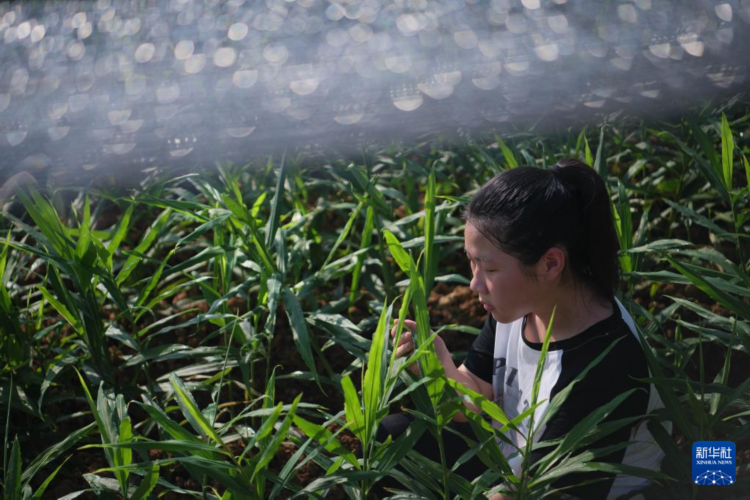 7月24日,在安徽省銅陵市義安區(qū)天門鎮(zhèn)新華村,朱晴雨在自家白姜田里觀察記錄姜苗狀態(tài)。新華社記者 傅天 攝